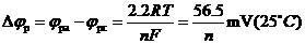 此时有电流通过电解池,滴汞电极的电位(jde)符合Nernst方程:
