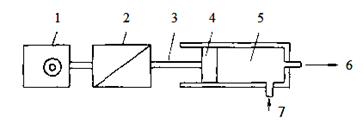 1.步进电动机 2.变速齿轮箱 3.螺杆 4.活塞