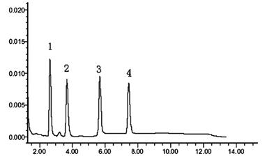 分析结果:应用高效液相色谱法在紫外检测器上同时测定食品中4种对羟基苯甲酸酯类防腐剂。方法的线性范围较大,方法的检出限为4.2 mg·kg-1~6.2 mg·kg-1,测定的回收率为91.2% ~104.9%。所建立的方法简便、快速、灵敏度高,并具有良好的精密度与准确度,可以满足食品中此类防腐剂检测的要求。见图15.19。