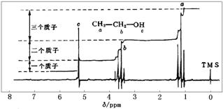 (3)该化合物有七个氢,由积分曲线的阶高可知a、b、c各组吸收峰的质子数分别为3、2、2。