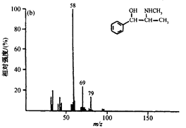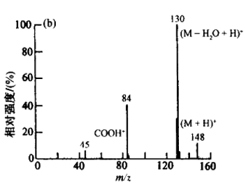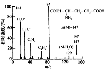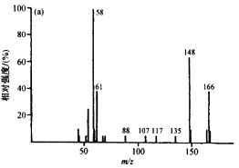 (2)确认分子离子峰,根据分子离子峰和高质量数碎片离子峰之间的m / z差值,找到分子离子可能脱掉的中性分子或自由基,从此推测分子的结构类型。