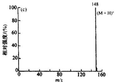 ③存在合理的中性碎片损失。因为在有机分子中,经离子化后,分子离子可能损失一个H或CH3、H2O、C2H4……等碎片,相应为M-1, M-15, M-18, M-28……碎片峰,而不可能出现M-3至M-14、M-21至M-24范围内的碎片峰。若出现这些峰,则峰不是分子离子峰。