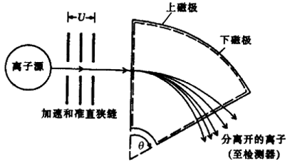是将样品分子离子化后经加速进人磁场中,其动能与加速电压及电荷z有关,即