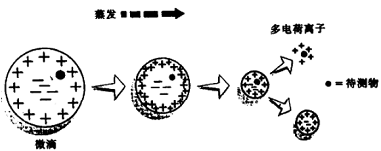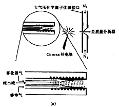 在离子喷雾的接口中,被分析样品液体进人一个带有高电压的喷雾器,形成带有高电荷微滴的雾。当微滴蒸发时,经过一个非常低的能量转移过程形成含有一个或多个电荷的离子(与液相存在的形式相同),进入质谱仪可以进行pg级分子完全分析,这对在只有极少量样品可供使用的情况(诸如生化分析)中应用极为重要。
