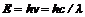 光子的能量可用J(焦[耳])或eV(电子伏)表示。eV常用来表示高能量光子的能量单位,它表示1个电子通过电位差为1V的电场时所获得的能量。1eV=1.602×10-19J,或1J=6.241×1018eV。在化学中用J·mol-1为单位表示1mol物质所发射或吸收的能量