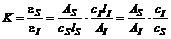 在配置的标样中cS、 cI都是已知的,As、AI可以从图谱中得到,因此可求得k值。然后在样品中配入一定量的内标物,测其吸光度,即可计算出待测组分的含量cS。