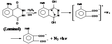 用于分析上的液相化学发光体系很多,常用于化学发光分析的发光物质有鲁米诺、光泽精、洛粉碱、没食子酸、过氧草酸盐等,但研究和应用比较广泛的有鲁米诺(Luminol) 和光泽精(lucigenin)。