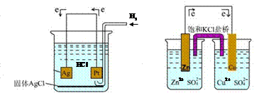 (b) 图8.1 化学电池 (a)无液体接界电池 (b)有液体接界电池 (a)中p(H2) = 101.325 kPa,c(HCl) = 0.1 mol•L-1