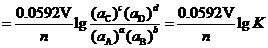 上述方程式称为电极反应的Nernst方程。