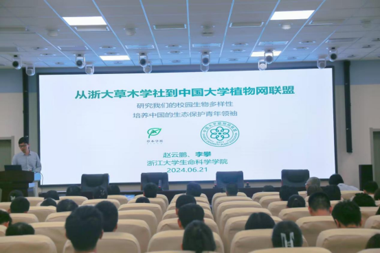李攀老师以“从浙大草木学社到中国大学植物网联盟”为题,分享了浙江大学草木学社的发展历程和通过社团活动开展校园生物多样性研究的经验。他详细介绍了中国大学植物网联盟的建立背景、宗旨及未来发展规划,呼吁高校青年学子积极参与生态保护事业,共同推动生态文明建设。