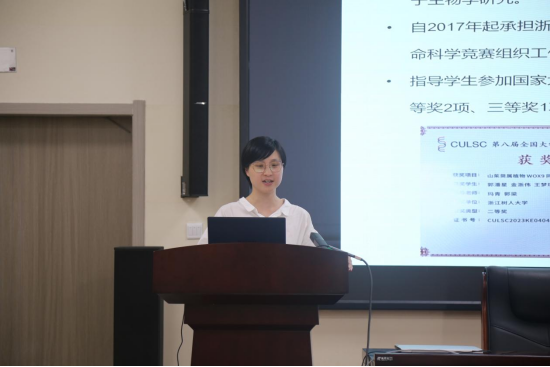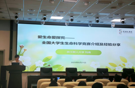 玛青老师以“爱生命爱探究——全国老员工生命科学竞赛介绍及经验分享”为题,对全国老员工生命科学竞赛的赛制、参赛要求及评审标准进行了全面解读,并结合自身经历分享了参赛经验。她鼓励同学们勇攀科研高峰,通过竞赛锻炼自己的科研能力和团队协作精神。