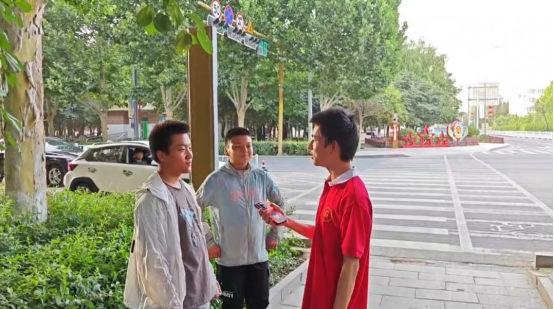 图为实践团成员对社区居民进行交通安全问答采访