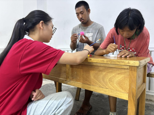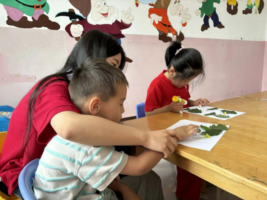 实践团成员们围绕“合作共赢,动手动脑”为主题,创新性的组织了植物贴画与石膏娃娃彩绘互动体验活动。孩子们在志愿者的悉心指导下,细心挑选各种植物材料,小心翼翼地将它们贴在画纸上,用一张纸树叶,一朵朵鲜花,创作出一幅幅生机勃勃且极具创意的画作。五彩斑斓的石膏娃娃在孩子们的巧手下也变得栩栩如生,不仅锻炼了孩子们的动手能力,更激发了他们的创造力与想象力。