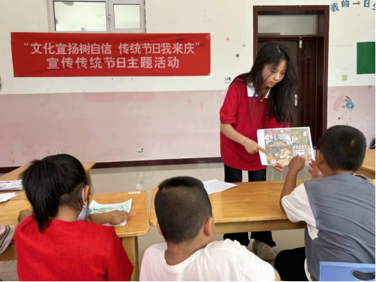 实践活动在“文化宣扬树自信,传统节日我来述”的主题活动中拉开序幕。实践团成员们化身文化使者,以生动有趣的方式,从传统节日的由来、意义、庆祝的方式等方面向小朋友们讲述中华传统节日的深厚底蕴与独特魅力,从春节的鞭炮声声到中秋的月圆人团圆,每一个故事都让孩子们听得津津有味,眼神中闪烁着对传统文化的浓厚兴趣与自豪之情。