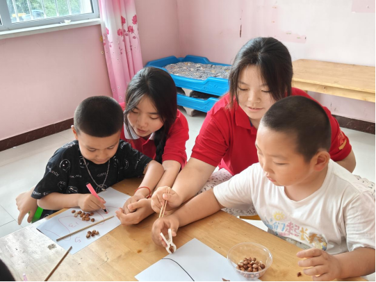 活动伊始,实践团通过“传球接力”和“搭积木”等互动游戏,帮助残疾儿童提高动手能力和人际交往能力。传球接力游戏中,孩子们在志愿者的引导下,通过相互配合完成游戏,成功传球后志愿者对他们的团队精神给与充分肯定,更加激发了每一位孩子的合作热情。搭积木活动则让孩子们在动手操作中体验到了成就感,每一块积木的堆叠都是他们专注和耐心的体现。