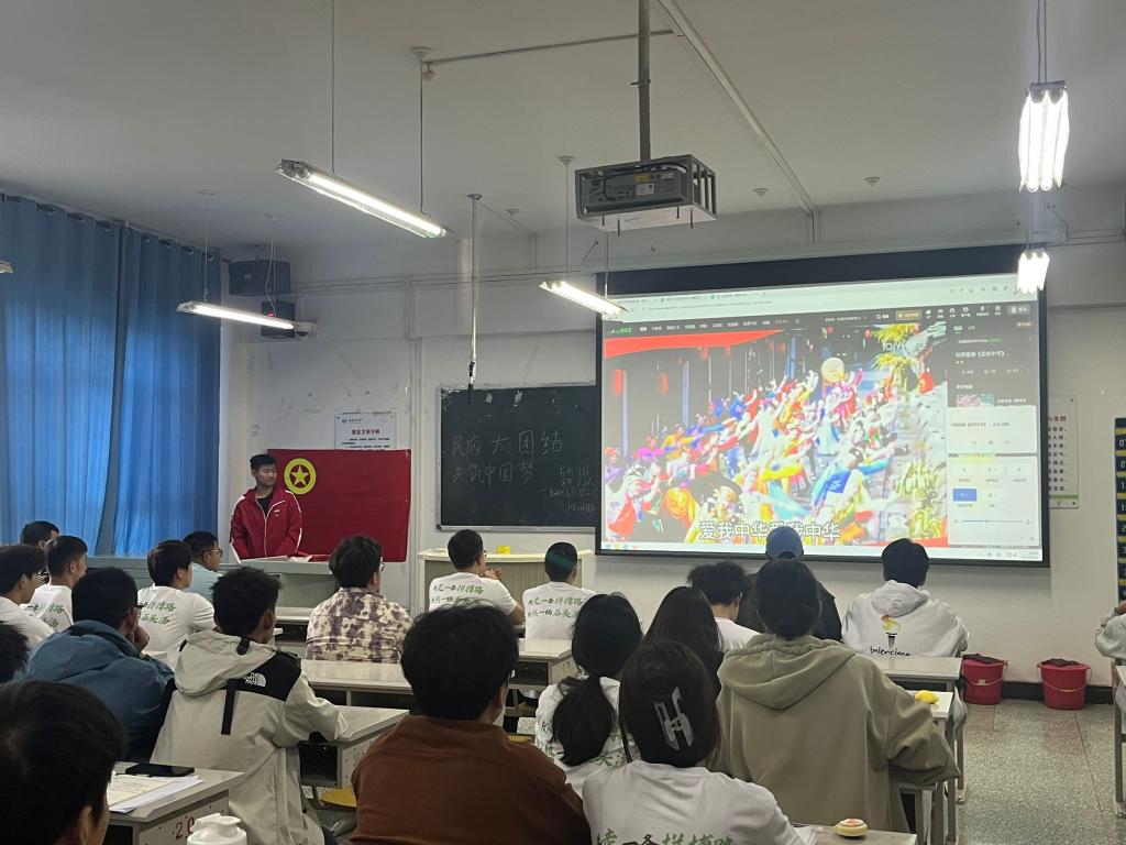 各班团支部精心制作幻灯片,向同学们展示中国各民族的传统服饰、手工艺品以及特色美食。这些丰富多彩的文化元素,不仅让同学们大开眼界,也让大家对各民族的风俗习惯和文化特色有了更加直观的认识。