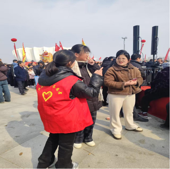 志愿者参与了场地布置、指示引导、秩序维持等任务,为活动的顺利进行提供了有力的保障。他们热情地为表演队伍和观众提供帮助,解答疑问,用微笑传递着温暖与关怀。活动现场,表演队伍身着鲜艳的服装,迈着欢快的步伐,尽情展示着当地独特的民俗风情和文化魅力。志愿者们在寒冷冬日下默默地付出与坚守成为了一道亮丽的青春风景线,以实际行动践行新时代青年志愿服务精神。