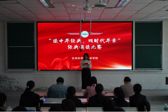 各参赛选手分别结合PPT、影音视频、配乐、道具等助演形式依次登台,台上表演精彩纷呈,高潮迭起,风格各异,各具特色。诵读内容包括家国情怀、品行操守、生命情思、青春光彩等。同学们将经典诗文诵读和音乐、历史文化等融合在一起,以饱满的精神、纯真的感情展示了中华经典美文的独特魅力。