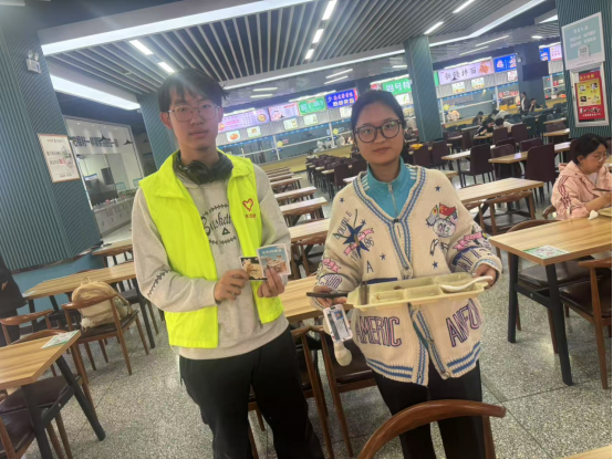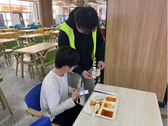 活动期间,志愿者们分赴校本部西区与东区各餐厅,在午餐及晚餐时段开展全方位宣传劝导。他们通过耐心讲解粮食安全的重要性及餐饮浪费的危害,引导同学们树立节约意识,自觉践行“光盘行动”。志愿者们的身影穿梭于餐桌之间,以真诚的沟通和细致地讲解,赢得了广大师生的积极响应。