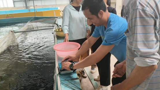 在这里,队员们不仅进行了水样采集,还与渔业负责人及工作人员进行了深入交流。他们详细询问了当地盐碱水土著鱼类的养殖情况、生长特性以及面临的生存挑战等问题,并认真记录相关信息。同时,队员们还实地观察了鱼类的生活环境,对周边的生态状况进行了细致调研,包括水生植物分布、水质变化对鱼类生长的影响等。