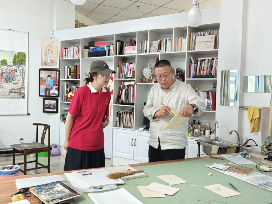 寻访团成员认真围绕烙画的创作技巧、文化内涵及传承难题与杨新平深入交流。杨新平不仅耐心解答疑问,更对青年学子寄予深切期望:“希望塔大学子不管今后走向哪个工作岗位都能如胡杨一般,不忘初心,热爱祖国,努力为国家的发展贡献出自己的力量!”