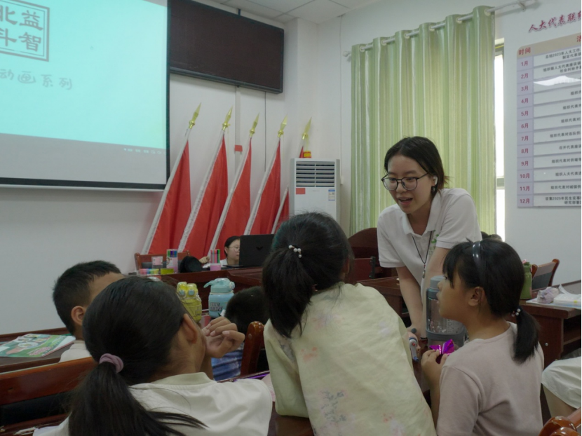 在行为礼仪课堂上,团队采用“动画示范+情景模拟”的创新形式,通过卡通视频演示坐姿、站姿、餐桌礼仪等规范,并邀请孩子们现场模仿练习。“双手递接物品要微笑”“公共场合说话轻声”……志愿者们将抽象礼仪转化为具体行动,孩子们在互动中逐渐养成文明习惯。课后,一名小女孩主动整理好桌椅,向老师鞠躬道别:“我要把今天学的礼仪教给弟弟!”