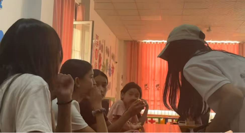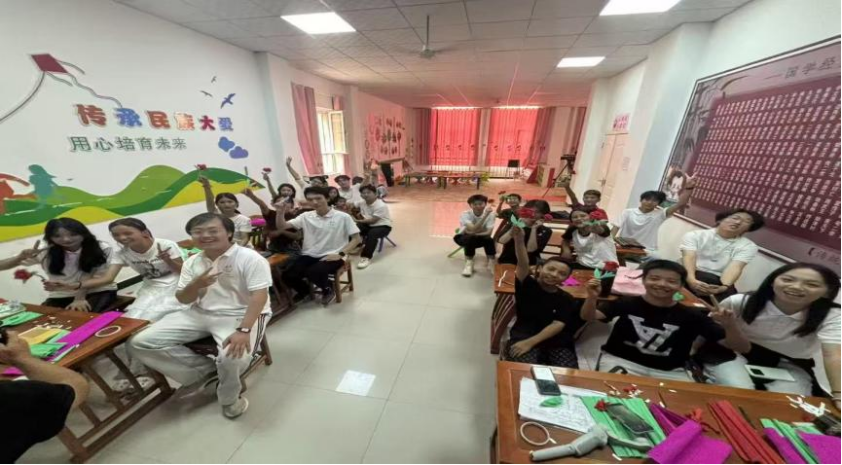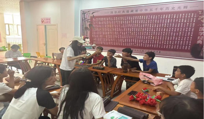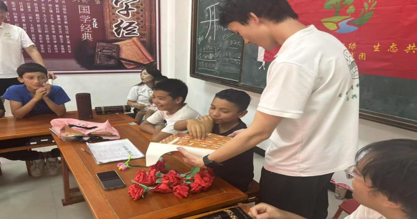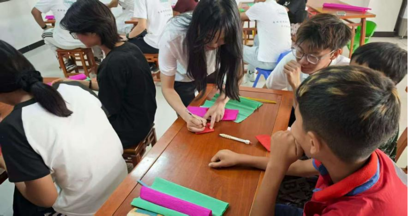 上午11时,实践团与社区完成对接后,活动正式开启。志愿者以手工折玫瑰花为起始,耐心传授折纸技巧。在志愿者的细致指导下,一张张彩纸逐步变成了娇艳的 “玫瑰”。这一环节不仅锻炼了小朋友的动手能力,还借花朵引导他们关注植物形态与生命之美,契合了“推动生态文化深入人心”的科普要求。