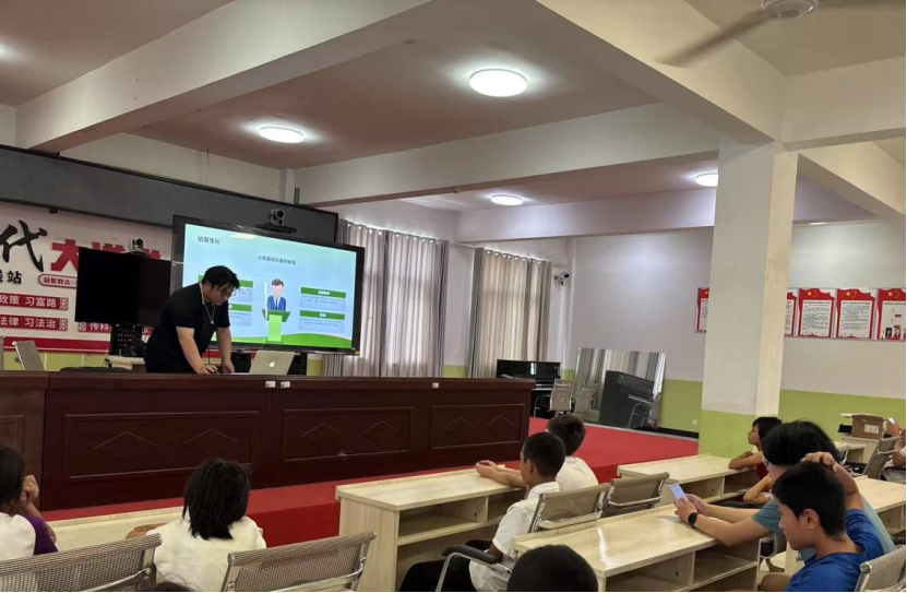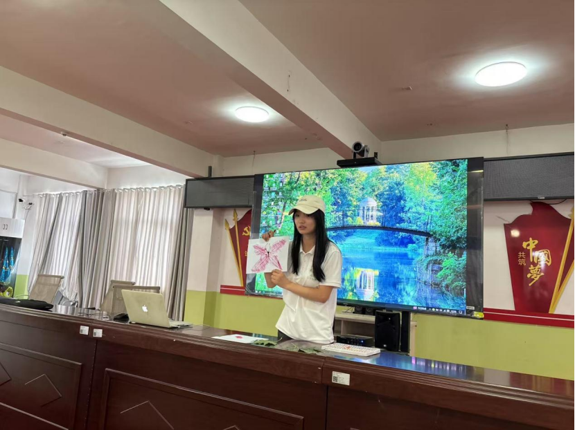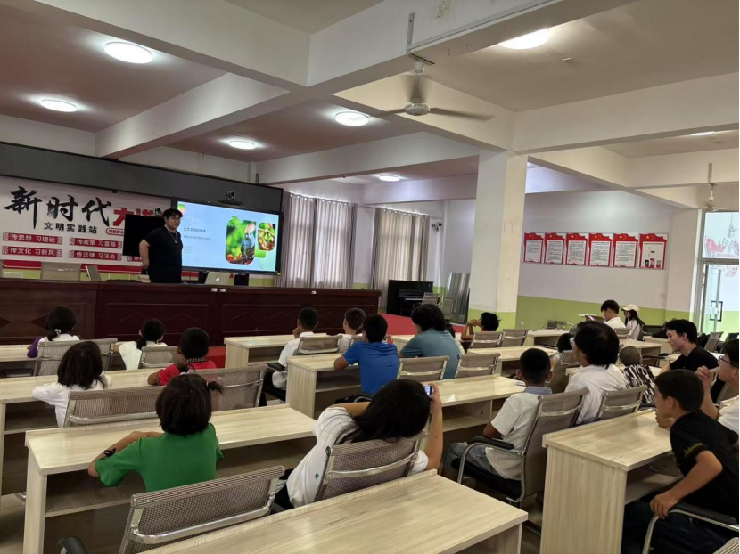 讲解过程中,队员们通过生动的 PPT 演示、有趣的动画视频,向孩子们介绍了生态系统的构成、动植物的生存习性以及环境保护的重要性。为了让孩子们更直观地感受生态知识,团队还带来了一些常见的动植物标本,让孩子们近距离观察和触摸。
