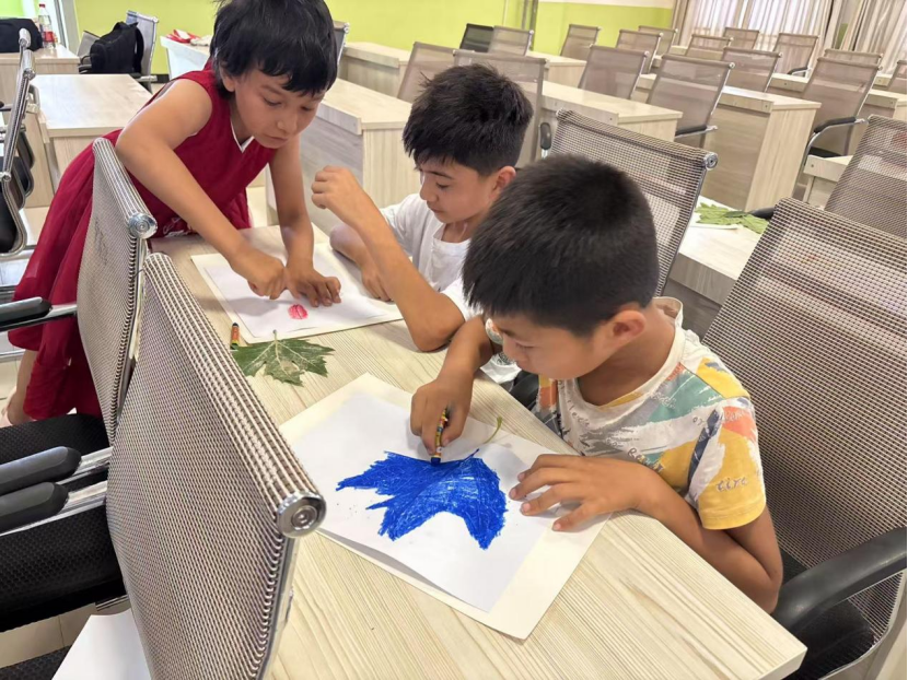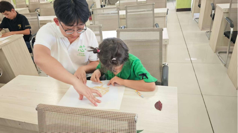 随后,志愿者和孩子们一起开展手工树叶拓印活动。孩子们在志愿者的指导下,充分发挥想象力和创造力,将一片片普通的树叶变成了一幅幅精美的艺术作品。通过这个活动,孩子们不仅提高了动手能力,还对大自然有了更深刻的认识和热爱。