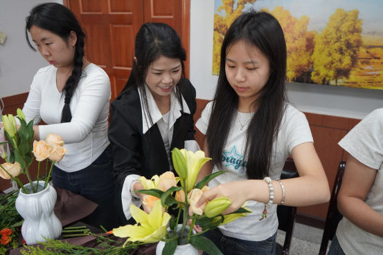 活动现场,花香四溢,温馨而惬意。公司特意邀请了专业花艺师,为同学们带来一场精彩的插花教学。花艺师从花材的选择、色彩的搭配,到造型的设计等方面,进行了细致入微地讲解与示范。同学们全神贯注地聆听,不时提出疑问,与花艺师积极互动。