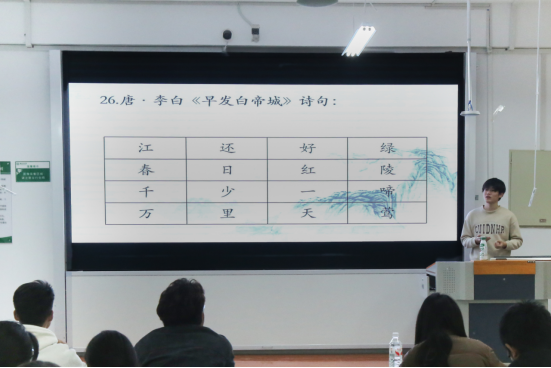 比赛现场,选手们精神抖擞、沉着应战,时而凝神思索,时而迅速抢答,指尖按下抢答键的瞬间,尽显对诗词的胸有成竹。从《诗经》的质朴纯粹到唐诗的气象万千,从宋词的婉约豪放到元曲的清新灵动,选手们或从容背诵千古佳句,或精准解读诗词意境,用扎实的诗词功底、真挚的情感表达与敏捷的思维反应,展现了中华诗词的独特魅力与当代青年传承者的精神风貌。台下观众全神贯注,时而为选手的精彩作答鼓掌喝彩,时而为紧张的比拼屏息凝神,整场活动沉浸在浓厚的诗词文化氛围中,书香气息扑面而来。