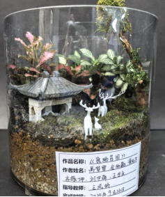 而在生态瓶展示环节,一个个晶莹剔透的玻璃瓶内,自成一派的微型生态系统更是夺人眼球。参赛者们模拟自然界中草地、森林、水域等不同生境,精心挑选搭配植物、微生物,甚至小型节肢动物,构建起物质循环与能量流动的相对平衡。这些“掌中世界”不仅考验着同学们对生态学知识的深刻理解,更体现了其细致的观察力、动手能力与长周期维护的耐心,方寸之间尽显生态奥秘。