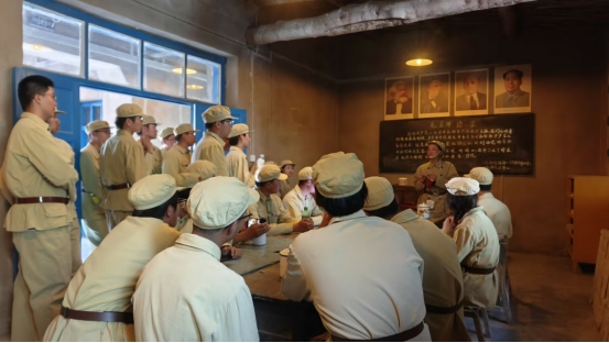 活动伊始,同学们身着军装,观看了在该景区实地拍摄的红色电影《我的青春岁月》,直观感受了老一辈革命者的热血情怀。随后,在讲解员的带领下,大家重温了那段艰苦卓绝的革命历史,一起学唱红歌,沉浸式体验了老战士的日常生活,深切感悟到革命先辈们的坚定信念与无私奉献。