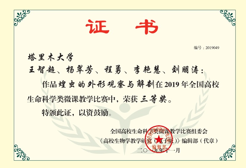 2019年王智超全国生命科学类微课教学比赛三等奖