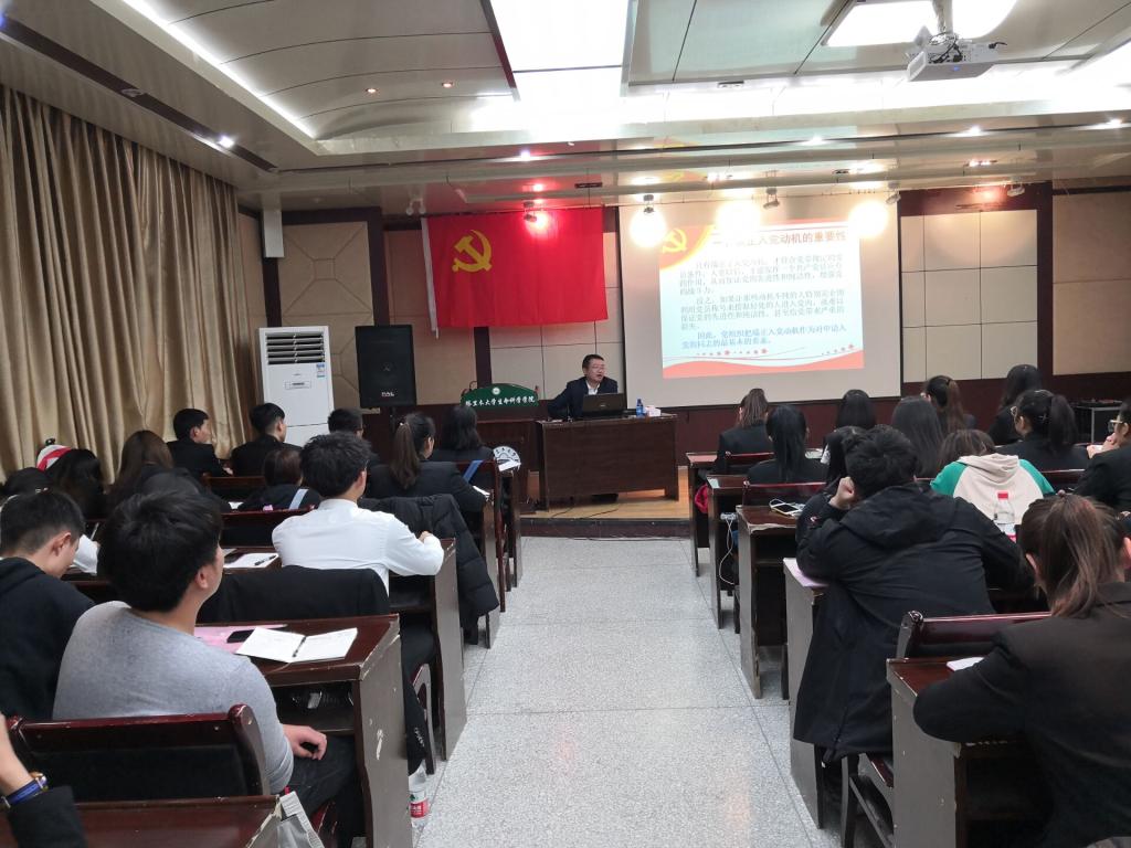 毛伟娜老师在《学习新党章·争做合格党员》的党课上,要求学员认真学习党章,深刻认识新党章是一部更加完善,符合时代要求的条令条例。新党章的修改,是给每一位同学提出了更高的要求。