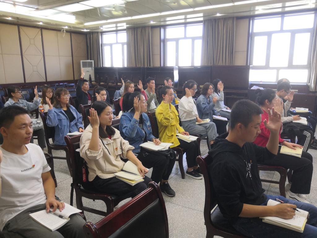 会议最后由毛梓僮和李宁老师带领全体党员共同学习了《见证初心和使命的十一书》中贺页朵的宣誓书和傅烈的绝命书两篇英雄人物的事迹,全体党员感触颇深,纷纷表示一定要向英雄前辈学习,忠诚于党,无私奉献,为共产主义事业奋斗终身的精神,为决胜全面建成小康社会、夺取新时代中国特色社会主义伟大胜利、实现中华民族伟大复兴的中国梦汇聚磅礴青春力量。