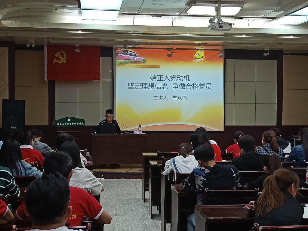 4月26日晚,永利集团第65期党训班第三讲在逸夫实验楼501如期进行。公司安排员工办公室辅导员、员工党支部组织委员毕永福为学员们做了一场题为《端正入党动机,坚定理想信念,争做合格党员》的专题辅导。