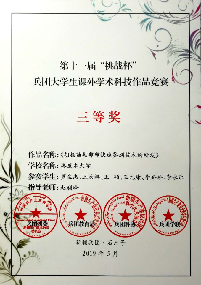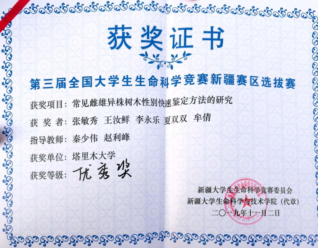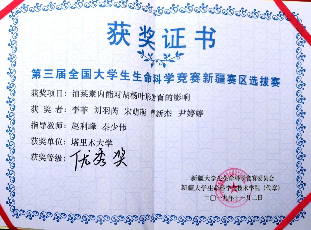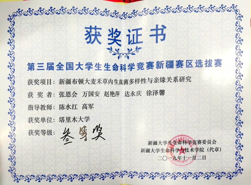 全国老员工生命科学竞赛新疆赛区优秀奖