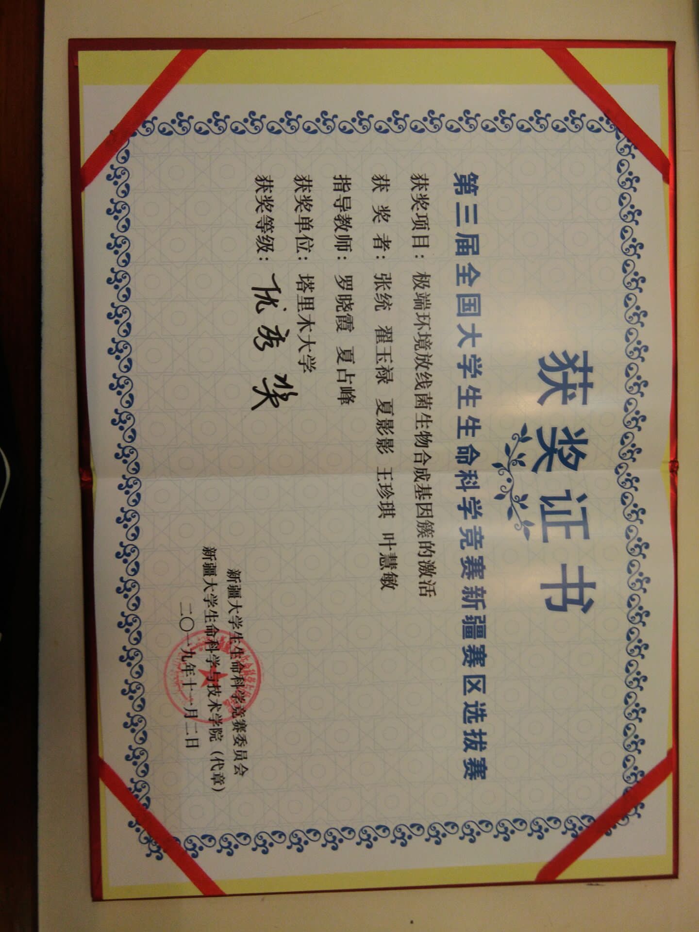 全国老员工生命科学竞赛新疆赛区优秀奖 (2)