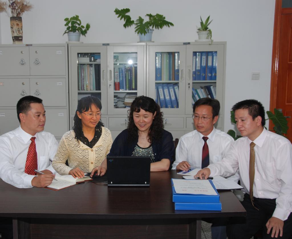 左起:副经理陈龙、副经理白红进、经理张利莉、党委书记钟凌风、副经理刘文杰、党委副书记杨保求