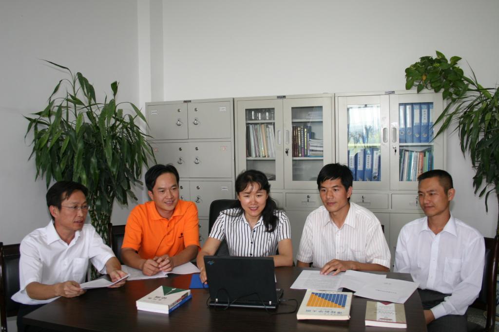 左起:党委副书记钟凌风、党委书记陈伟、经理张利莉、副经理白红进、副经理彭丽桃